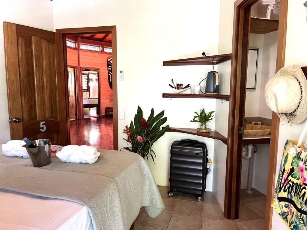 Our Garden Studio Rooms offer a cozy, compact retreat within the Nabanga building. These hotel-style rooms sit beside one another and each has two internal doors opening into the shared common area, plus one external door leading out to the garden.